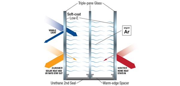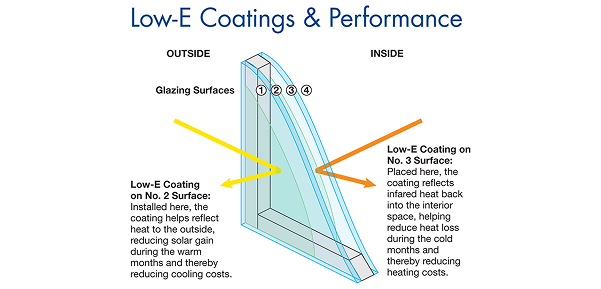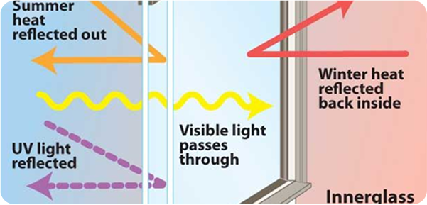 The summer, the coating on the glass reflects heat back out, Reducing the amount of heat that enters the house and keeping it cooler.